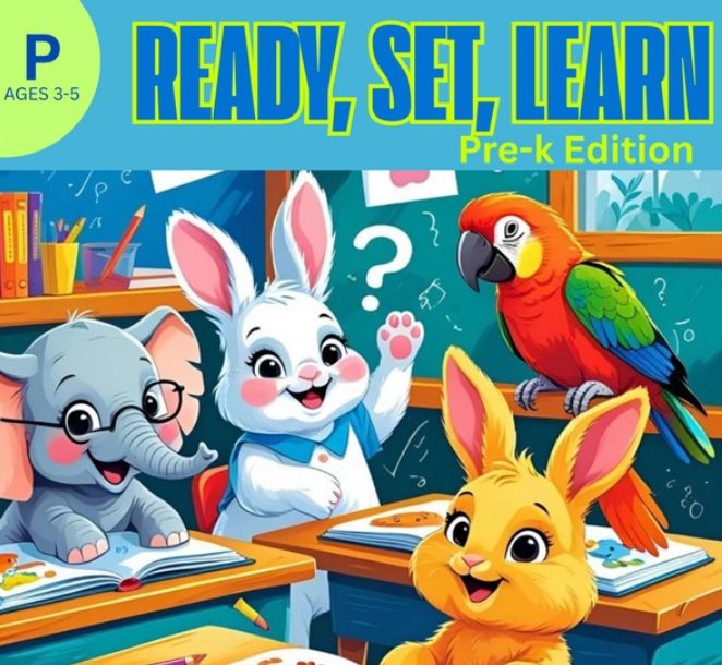 "Ready, Set, Learn" is a fun and interactive preschool activity workbook designed to help young learners build confidence and essential skills as they prepare for kindergarten.